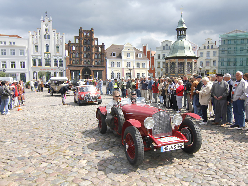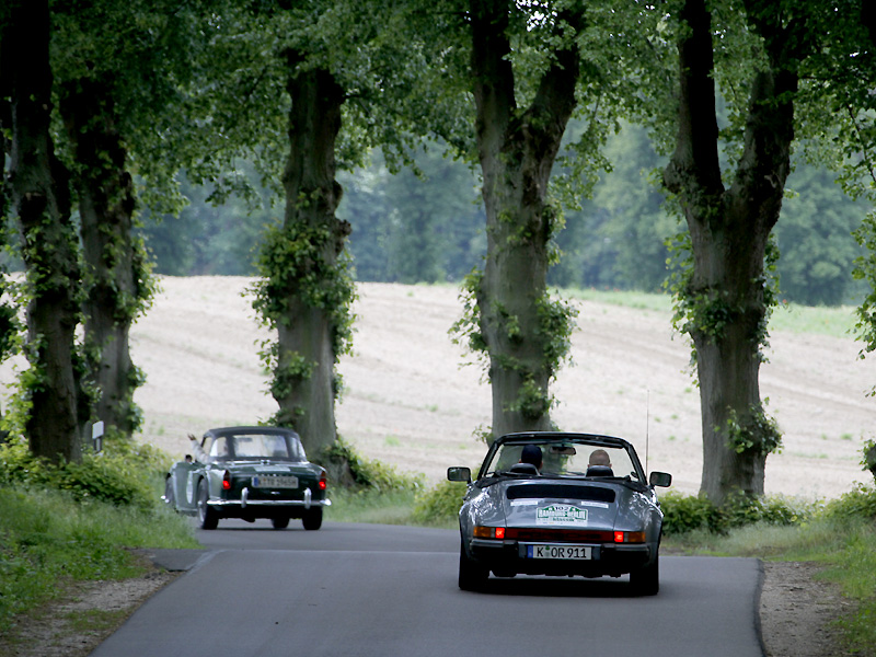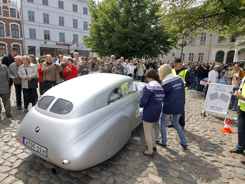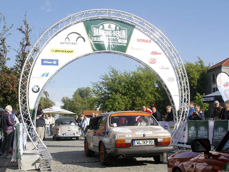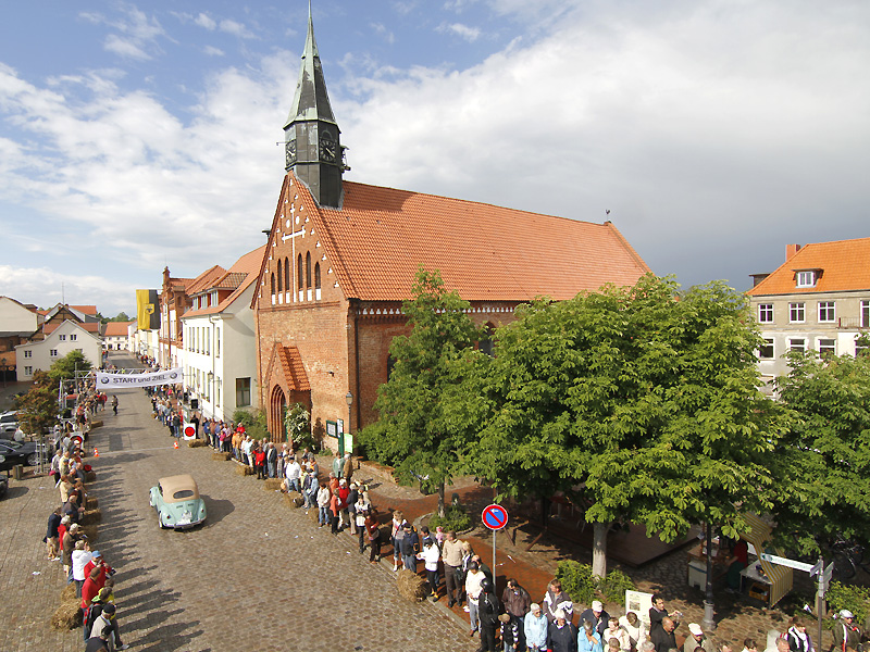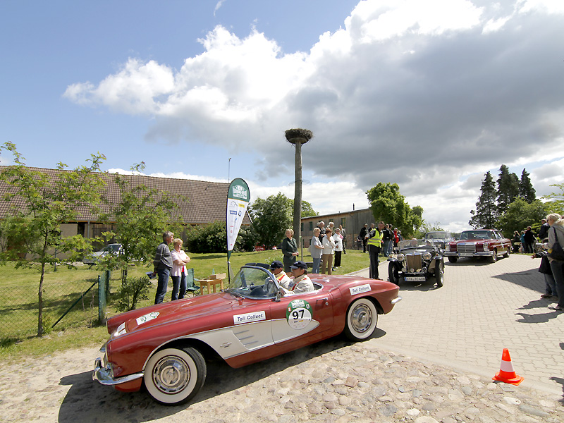 Zählt man jetzt in ähnlicher Weise noch die Streckenhighlights auf, sollte sich jeder Auto- und Oldtimer-Fan spätestens jetzt ein Kreuz im Kalender 2012 machen. Auf den 700 Kilometer fehlt nur wenig. Das Holstentor in Lübeck ist diesmal dabei, der Marktplatz von Schönberg, Wismar, Sternberg und Krakow am See, ebenso der von Neustrelitz und Templin. In Neustrelitz geht es zudem an den Hafen, in Boltenhagen rollen die Oldtimer über die Ostsee-Promenade des Iberotel. In Annenwalde überrascht Gastwirt Müller-Hagenbeck alle Teilnehmer mit Plätzchen und selbstgemachter Marmelade, in Krakow am See reicht der ortsansässige Bäcker süße Amerikaner mit BMW-Logo und in Lüttenhagen stempelt erstmals eine Försterin in Uniform die Bordkarten der Teams. Eine Mecklenburger Seenplatte und die großen Waldflächen der Schorfheide sind da schon fast Standardgrößen der Hamburg-Berlin.