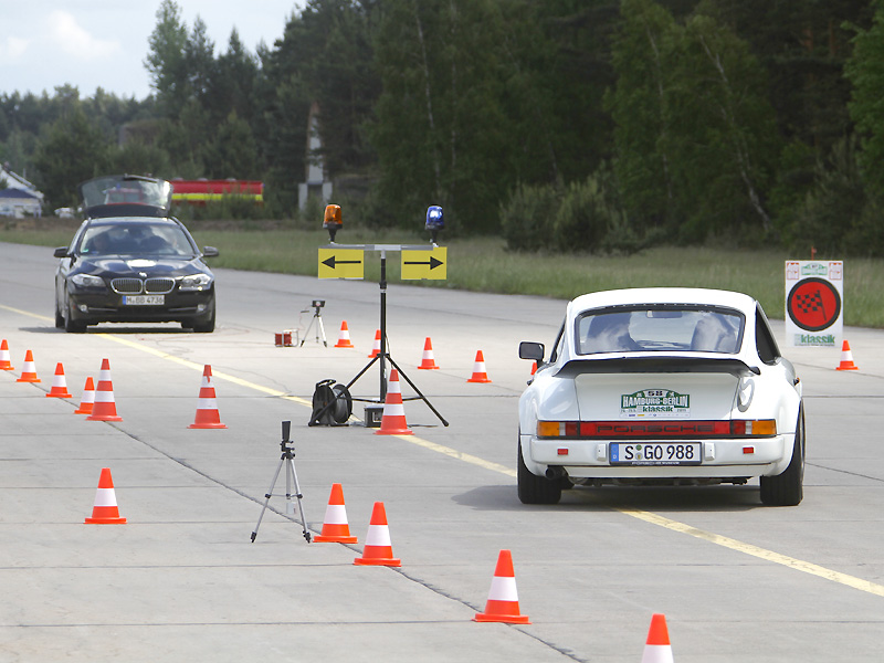 Ein letztes Highlight wartet dann noch in Groß Dölln auf alle. Auf dem ehemaligen russischen Militärgelände befindet sich mittlerweile eines der spektakulärsten Fahrsicherheitszentren in Deutschland. Neben einer immer noch intakten Großlandebahn (mit 4,1 km Länge und 100 Metern Breite die größte in Europa) sind 300 Test-km/h hier locker möglich. Darüber hinaus wurde das Gelände inmitten der Schorfheide um eine reinrassige Rennstrecke erweitert. Ganz klar findet dort die letzte WP der Hamburg-Berlin-Klassik statt. Passend zu den Oldtimern natürlich ganz in Ruhe, statt Topspeed warten sieben exakt zu durchfahrende Lichtschranken auf die Teilnehmer. Dann heißt es in Berlin Abschied nehmen – und warten. Zum Glück hat die 5. Hamburg-Berlin AUTO BILD-Klassik bereits ein Datum – vom 06.-09. September 2012.
