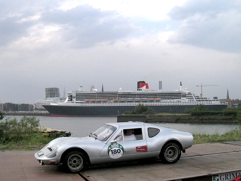 Tatsächlich können die Organisatoren der Rallye die Reederei Cunard zu einer ungewöhnlichen Kooperation überreden. Dem Sieger der Rallye spendiert man am Ende eine Transatlantik-Überquerung samt Rückflug von New York. Neben Bernd Weise habe am ersten Fahrtag dann auch alle anderen Teilnehmer die Gelegenheit, der Queen Mary 2 im Ziel des Prologs etwas näher zu kommen. Im Hafen-Terminal Unikai hat man eigens zu diesem Zweck eine Rampe errichtet, auf der die Oldtimer für ein Foto mit der Königin der Meere posieren dürfen. Dass das berühmteste Kreuzfahrtschiff dann noch pünktlich zum Begrüßungsabend die Teilnehmer und Zuschauer an der Fischauktionshalle zu Tränen rührt, gehört ebenfalls zum Rahmenprogramm der dreitägigen Oldtimer-Tour mit Ziel Berlin.