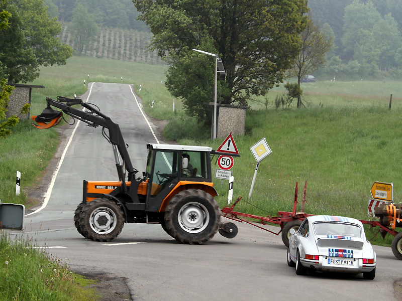 Am Sonntag steht dann die große Schleife durch das Sauer- und Siegerland auf dem Programm, eine richtige Rallye mit allen Gemeinheiten, die das Reglement so hergibt. Schnittfahren à la Histo Monte, verschachtelte Prüfungen, lange und kurze Wertungen. Dazu noch Motorsport ohne Motor, denn die Stempelkontrolle am Rhein-Weser-Turm befindet sich ganz oben, 113 Stufen hoch. Ein Problem, für das auch Peter Göbel keine Lösung hat, jedenfalls keine bequeme.