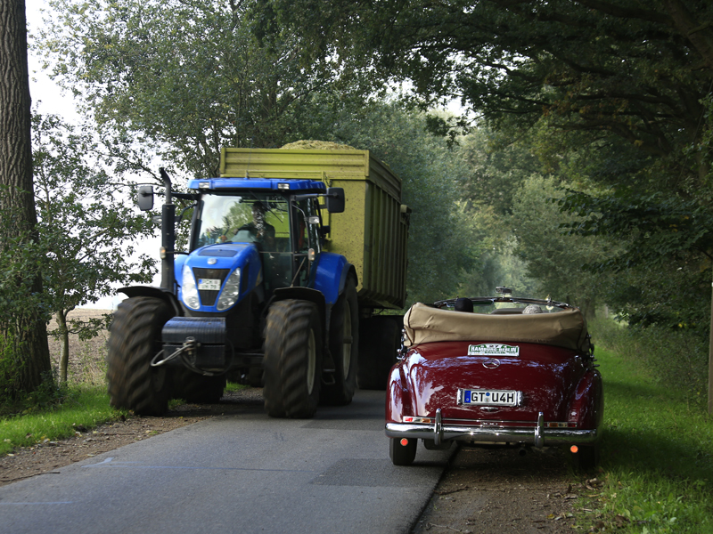 Doch die Rallye selbst ist noch lange nicht zu Ende. In Flecken-Zechlin sorgen jede Menge Kindergarten-Kinder für Stimmung, wenig später fotografiert selbst die Polizei die 177 Klassiker auf dem Weg zur Bischofsburg in Wittstock an der Dosse. Wer nach 132 Kilometer keine Lust mehr hat, darf im Gutshof in Woldzegarten parken, der wohl einsamsten Mittagsstation aller Hamburg-Berlin-Ausgaben. Im beschaulichen Ort gibt es kaum Platz für die Begleitfahrzeuge, alle Oldtimer dürfen die Wiesen rund um die Eventscheune zuparken, eine knapp bemessene aber dennoch beeindruckende Fahrzeug-Parade bietet sich Zuschauern und Kellnern.