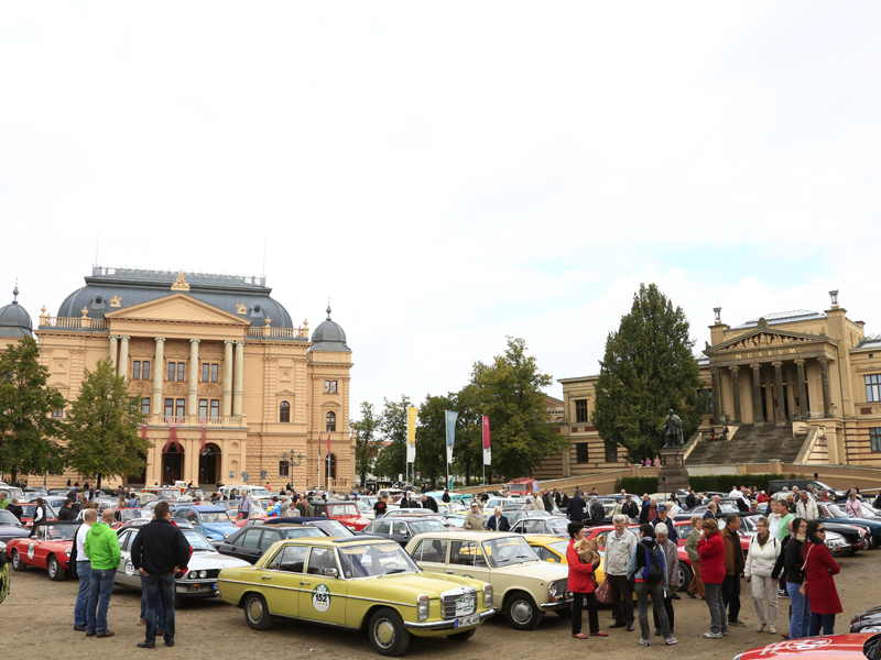 Die nächste Stadt am dritten Tag heißt Parchim, auch hier gibt es standing ovations, dann fahren die Teams zur letzten Mittagsrast in die Landeshauptstadt Schwerin. Unmittelbar am Schloss parken die Karossen im „Alten Garten“, gespeist wird direkt in der Orangerie.